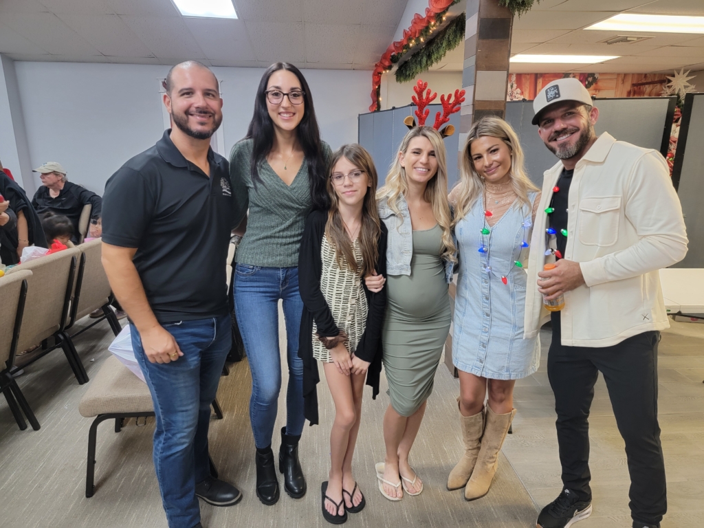 ABOUT the PHOTOS Vinny Saputo, Alexandria Saputo, younger sister of Taryn Van Deventer with Taryn, Anna Foley, and Blake Day at Reach Assembly Church in Immokalee after they presented children and families with Christmas gifts and an annual pizza party.