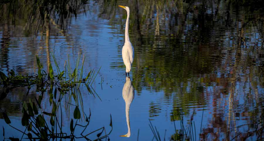 Within eyesight, I see blue herons and egrets, and beyond where my eyes can see, I know there are gators galore.