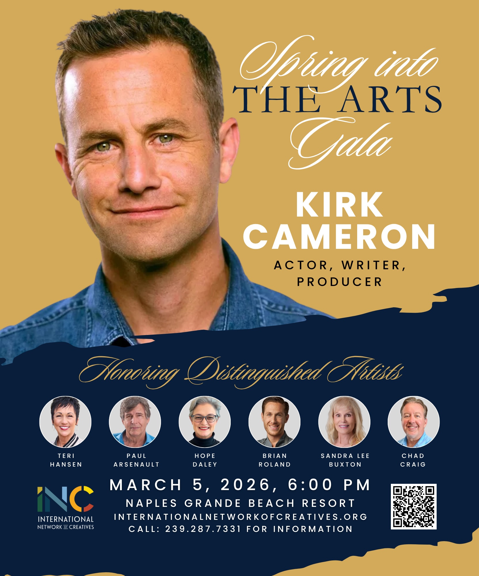 The International Network of Creatives (INC) will hold its 3rd Annual Spring into the Arts Gala on Thursday, March 5, 2026, at the Naples Grande Beach Resort, starting at 5 PM. The Gala will honor 6 leading SWFL creatives representing various art forms, whose lives and work have had a profound impact on the community. Honorees include: Paul Arsenault – Visual Arts, Sandra Lee Buxton – Journalism, Chad Craig – Music, Hope Daley – Cinematography, Teri Hansen – Creative Communications, Brian Roland – Culinary Arts.
