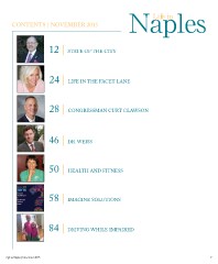 CONTENTS | NOVEMBER 2015 7 12 | STATE OF THE CITY 24 | LIFE IN THE FACET LANE 28 | CONGRESSMAN CURT CLAWSON 46 | DR. WEISS 50 | HEALTH AND FITNESS 58 | IMAGINE SOLUTIONS 84 | DRIVING WHILE IMPAIRED Life in Naples | November 2015
