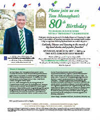 tomsbirthday.avemarialaw.edu All proceeds benefit the Thomas S. Monaghan Scholarship Fund for Ave Maria School of Law.