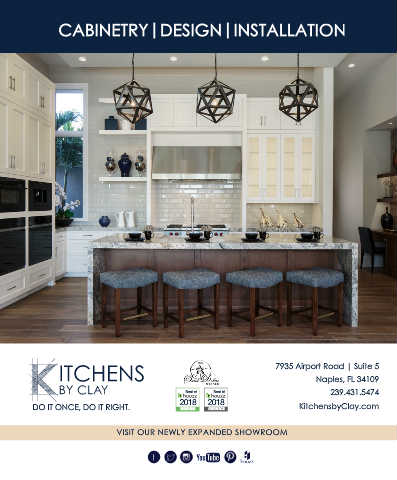 CABINETRY|DESIGN|INSTALLATION 7935 Airport Road | Suite 5 Naples, FL 34109 239.431.5474 Best of Best of 2018 2018 DO IT ONCE, DO IT RIGHT. DESIGN SERVICE KitchensbyClay.com VISIT OUR NEWLY EXPANDED SHOWROOM