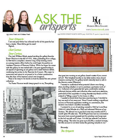 Our dad, William Meek, started working for gallery founder                                                        “MONKS” BY LOUIS BOSA NOW HANGS IN OUR PARENT’S BEDROOM,