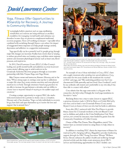 LEFT: Amanda Seide turned her life around with the help of DLC and yoga. Today, she donates PATRON’S CLUB Dr. Robert & Tamera Hanson