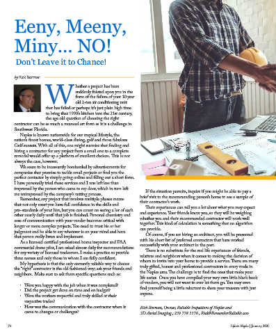 ∙ How was the communication with the contractor when it Rick Borman, Owner, Reliable Inspections of Naples and