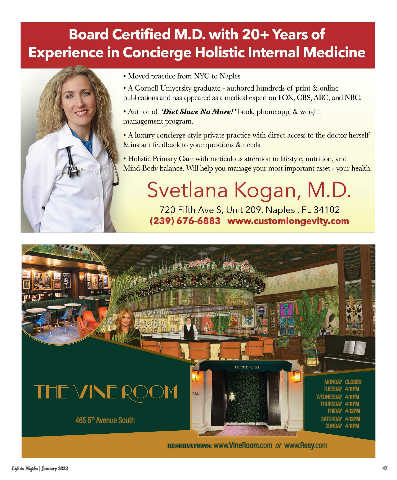 MONDAY CLOSED TUESDAY 4-11PM WEDNESDAY 4-11PM THURSDAY 4-11PM FRIDAY 4-12PM 465 5 Avenue South SATURDAY 4-12PM th SUNDAY 4-11PM RESERVATIONS: www.VineRoom.com or www.Resy.com Life in Naples | January 2022 47