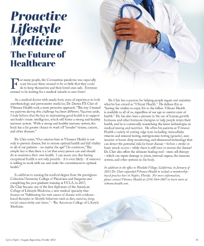 anesthesiology and preventative medicine, Dr. Darren FX Clair of what he has coined as “Vibrant Health.” He defi nes this as