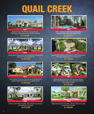 gorgeous screened lanai with pool, 3 car garage and more. 4 BR, 5.5 BA, den/offi ce, family room gorgeous lanai with pool, $850,000 $630,000 2.5 car/golf cart garage