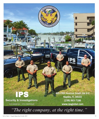 Only A Moment I IPPSS Se Security & Investigationscurity & Investigations PI # A3000116 / PPO # B3000229 “The right company, at the right time.” 68 Life in Naples | August, September, October 2022 Life in Naples | August, September, October 2022 69