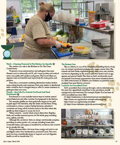 Knowing what and how much to feed each animal is a science (Yup. Alligators can be trained!) tools, cutting boards, and containers. Each prep station is disinfected Look For Aza Accredited Zoos!