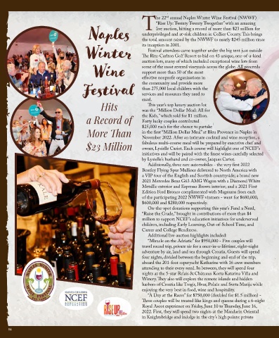 million to support NCEF’s education initiatives for underserved enjoy three days of insider experiences at Staglin Family Vineyard The Naples Winter Wine Festival, one of the world's most prestigious