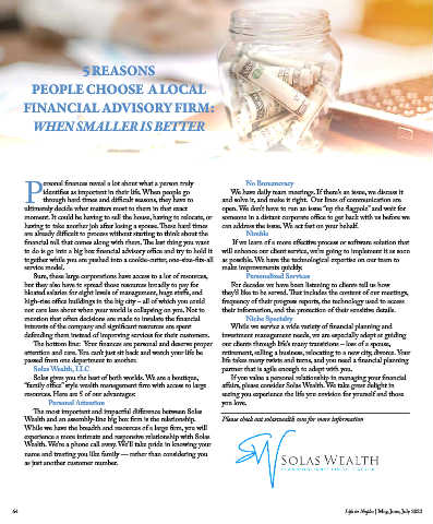 Solas gives you the best of both worlds. We are a boutique, If you value a personal relationship in managing your financial