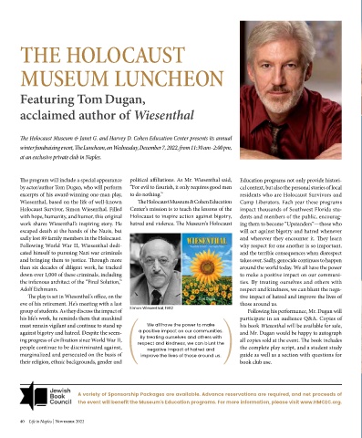 Holocaust Survivor, Simon Wiesenthal. Filled Center’s mission is to teach the lessons of the impact thousands of Southwest Florida stu- Private Charters, Specialty Cruises,