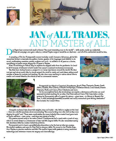 A sampling of Dr. Jan Forszpaniak’s resumé includes: world champion fisherman, global fish
