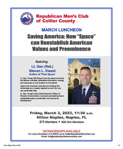For more information or to RSVP, go to CollierRepublicanMensClub.com