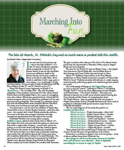 Ides of March on the 15 and St. Patrick’s on the 17 . One of the jewels of Naples are The Naples Players, who