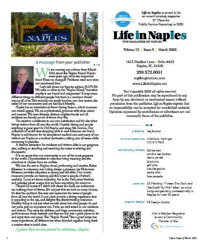 safety of our community and our laid back lifestyle. permission from the publisher. Life in Naples regrets that