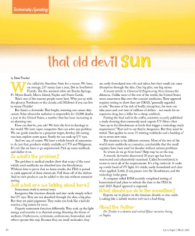 Organic sunscreens function differently. They soak up the light Ab ou t t he Au t hor