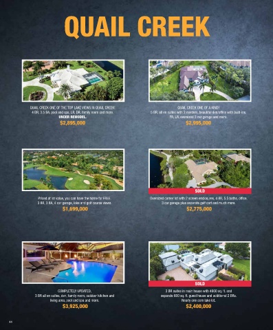 3 BR all en suites, den, family room, outdoor kitchen and separate 600 sq. ft. guest house and additional 2 BRs. 239.595.2479 4500 Executive Drive • Quail Plaza Suite 110 • Naples, FL 34119 239.595.2478