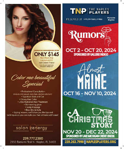 OCT 2 - OCT 20, 2024 SPONSORED BY GALLERIE INDIGO OCT 16 - NOV 10, 2024 NOV 20 - DEC 22, 2024 SPONSORED BY LAKE MICHIGAN CREDIT UNION 239.263.7990 | NAPLESPLAYERS.ORG
