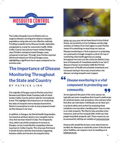 Collier County has had one travel-related Dengue means it is something we must keep our eyes on.