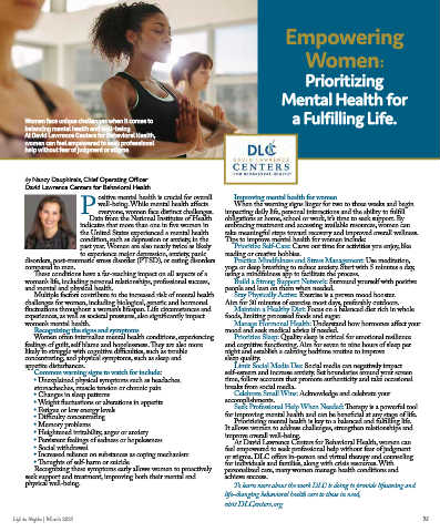 condition, such as depression or anxiety, in the Tips to improve mental health for women include: