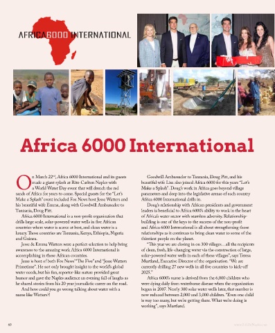 awareness to the amazing work Africa 6000 International is of clean, fresh, life-changing water via the construction of large,