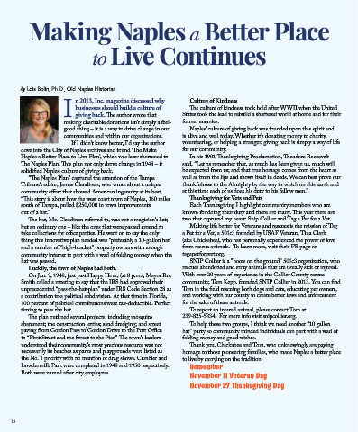 solidified Naples' culture of giving back. be expected from us; and that true homage comes from the heart as