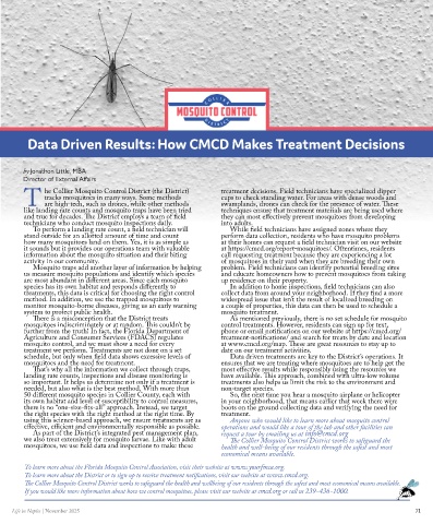 he Collier Mosquito Control District (the District) treatment decisions. Field technicians have specialized dipper