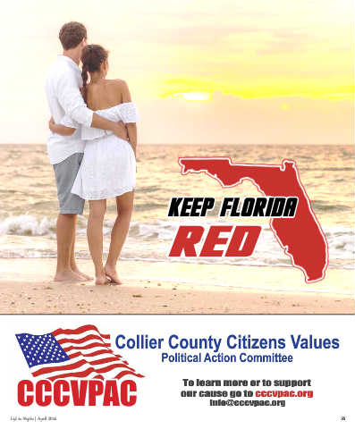 Keep Keep Florida Flo a rid red red Collier County Citizens Values Political Action Committee CCCVP CCCVPAC our cause go to cccvpac.org AC To learn more or to support info@cccvpac.org Life in Naples | April 2026 35