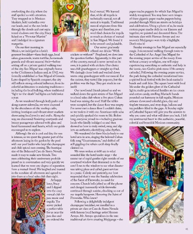 overlooking the city, where the local mezcal. We learned paper mache puppets for which San Miguel is