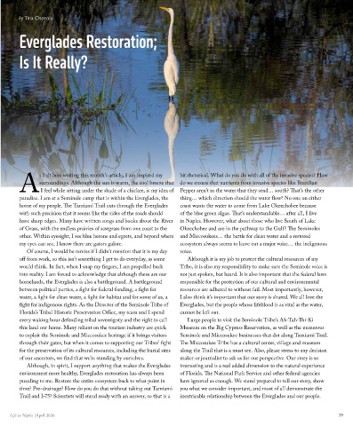 other. Within eyesight, I see blue herons and egrets, and beyond where and Miccosukees… the battle for clean water and a restored