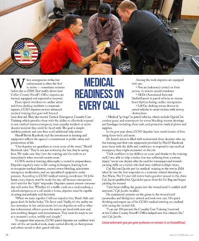 CCSO’s medical training philosophy is rooted in preparedness. injury,” wrote one deputy after he used his tourniquet and wound-