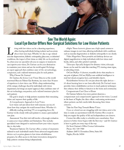 of experience in low vision care. With a deep understanding it’s about learning how to use them effectively. Dr. Gartner’s team