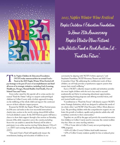 Founded by NCEF, the Naples Winter Wine Festival enters the whole child,” said NCEF Chief Executive Officer Maria Jimenez-