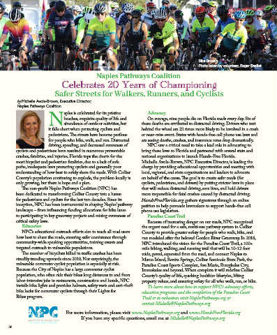 understanding of how best to safely share the roads. With Collier local, regional, and state organizations and leaders to advocate