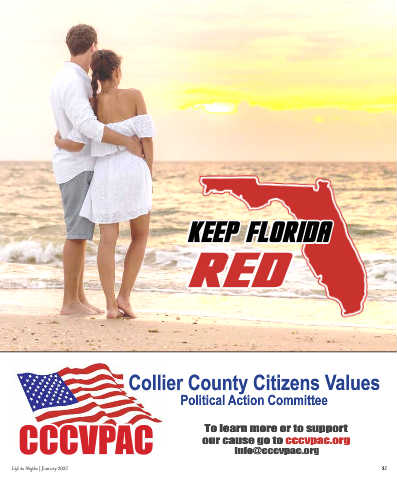 Keep Florida Keep Flo rid a red red Collier County Citizens Values Political Action Committee CCCVPAC our cause go to cccvpac.org CCCVP AC To learn more or to support info@cccvpac.org Life in Naples | January 2025 35
