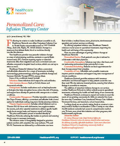 F in North Naples conveniently located at 1265 Creekside By offering outpatient infusion care, Healthcare Network