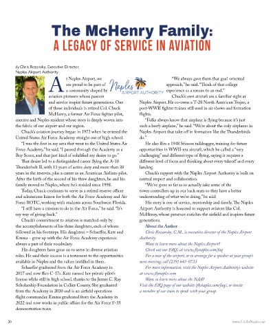 years in the reserves, plus a career as an American Airlines pilot. Chuck’s rapport with the Naples Airport Authority is built on