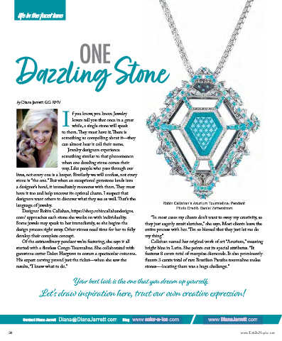 Of the extraordinary pendant we’re featuring, she says it all Callahan named her original work of art “Azurium,” meaning