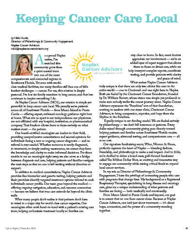 In addition to medical consultations, Naples Cancer Advisors In my role as Director of Philanthropy & Community