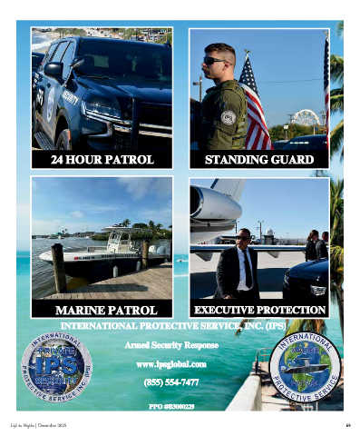 24 HOUR PATROL STANDING GUARD MARINE PATROL EXECUTIVE PROTECTION INTERNATIONAL PROTECTIVE SERVICE, INC. (IPS) Armed Security Response www.ipsglobal.com (855) 554-7477 PPO #B3000229 Life in Naples | December 2025 69