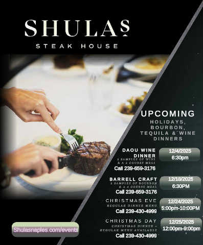 Shulasnaples.com/events R E G U L A R M E N U A V A I L A B L E 12:00pm-9:00pm